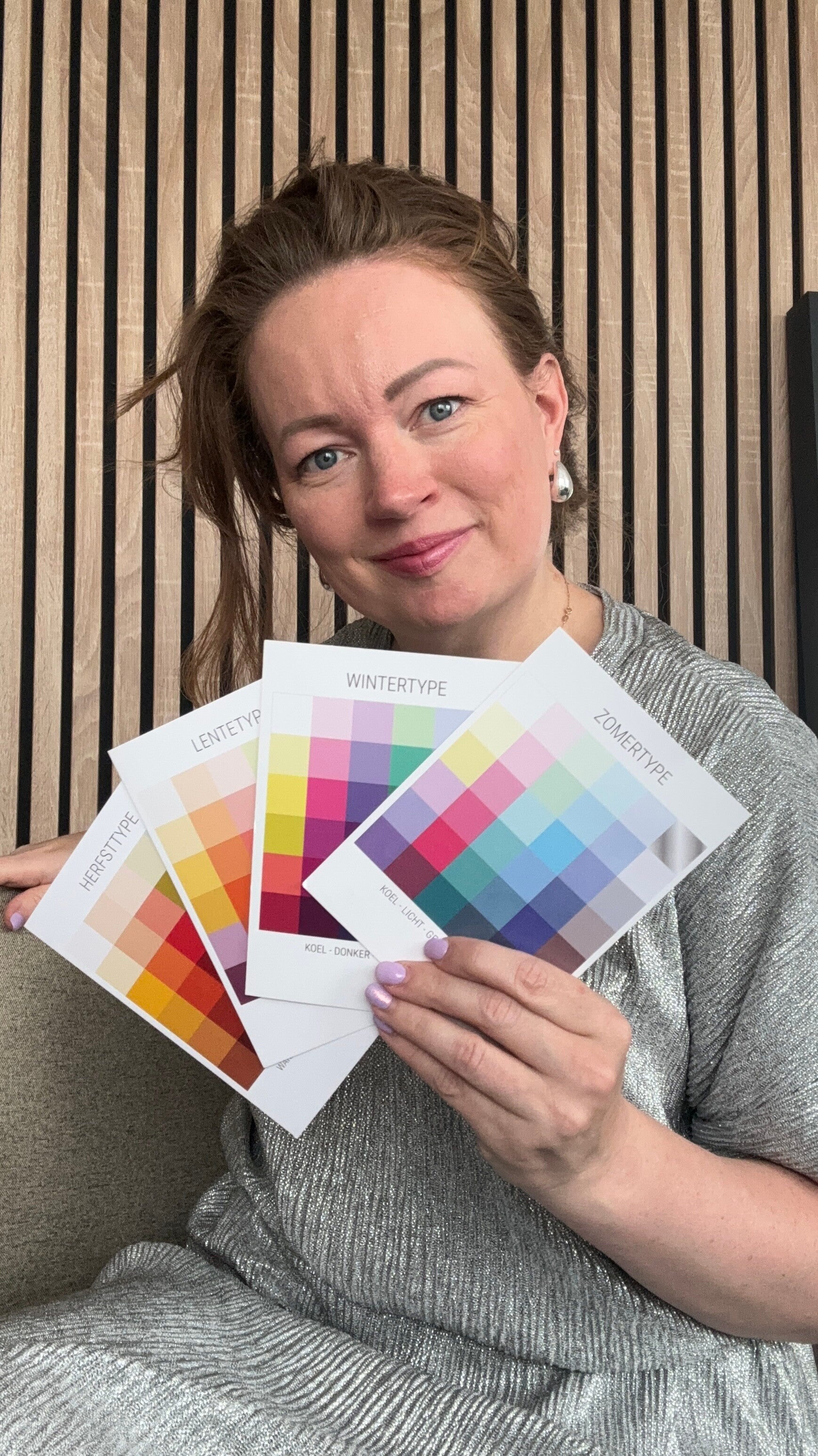 Op basis van de uitkomsten krijg je van mij een compact kleurenkaartje mee naar huis. (zie foto) Dit kaartje geeft je een richting in je mooiste kleuren.